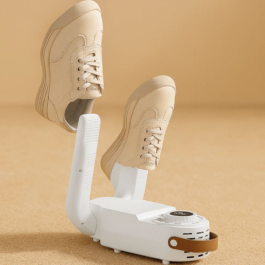 Uscătorul electric pentru încălțăminte este un dispozitiv compact și ușor de folosit, conceput pentru a usca rapid și igieniza pantofii, ghetele sau cizmele. Folosește aer cald care circulă uniform la 360° pentru a elimina umezeala din interiorul încălțămintei, fără să deterioreze materialul. În plus, este dotat cu o funcție de sterilizare UV, care ajută la distrugerea bacteriilor, ciupercilor și mirosurilor neplăcute. Are un termostat reglabil și un sistem de oprire automată, ceea ce îl face sigur și eficient. Designul pliabil permite depozitarea ușoară acasă sau în bagaj, fiind ideal atât pentru uz zilnic, cât și pentru călătorii.